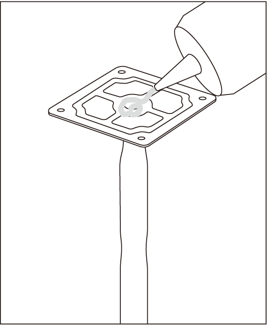 3.フランジ底面と土間(束石)面のゴミ・汚れ等を取り除き、接着剤(別売り)をフランジ底面にまんべんなく塗布します。